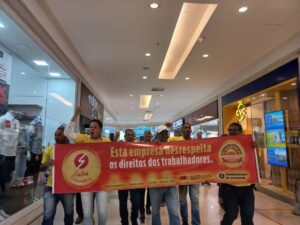 Com o tema “Esta empresa desrespeita os direitos dos trabalhadores. Não paga o trabalho aos domingos e não fornece alimentação”, o Sindicato dos Comerciários iniciou as Sextas Vermelhas no Shopping da Bahia. Além de atos em frente às empresas, nossos dirigentes caminharam entoando a palavra de ordem “Sem pagamento dos domingos, não conte comigo!” As manifestações aconteceram nas empresas HIS, Dinni, Leão de Ouro, Login, MM Moda, Lacoste, Eggo’s, Sonho dos Pés, Papel & Cia e Carolina Costas. Todas elas deixaram de pagar o valor pelo trabalho aos domingos.