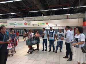 Na manhã desta terça-feira (23), dirigentes do SintraSuper percorreram várias lojas do grupo Carrefour em Salvador. A ação faz parte do trabalho de mobilização para o grande ato no dia 30 de janeiro. Os sindicalistas divulgaram uma nota para os funcionários e clientes que se encontravam nas lojas.