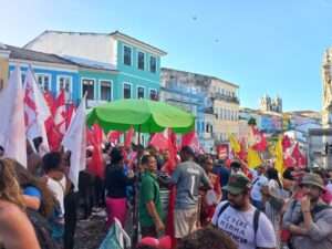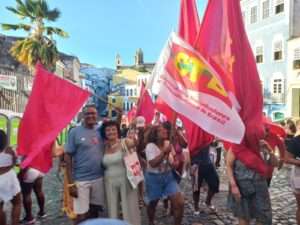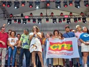A CTB marcou presença no palco com o presidente nacional Adilson Araújo e a presidenta da Central na Bahia, Rosa de Souza. “Esse ato acontece no Centro de Salvador, palco de grandes lutas no Século 19, como a Revolta dos Malês. As lideranças daquela época lutavam por liberdade e igualdade. Nos tempos atuais, lutamos para reforçar a democracia brasileira, exigindo mais direitos, empregos, igualdade salarial e que os golpistas sejam punidos, inclusive com prisão. Para avançarmos, precisamos colocar mais dendê e pimenta nessa luta. A CTB segue firme com os partidos de esquerda e os movimentos sociais por um novo Brasil com Lula”, afirmou Adilson.