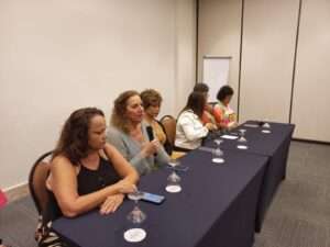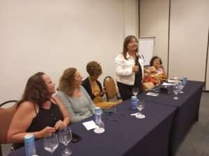 A presidenta da CTB Bahia, Rosa de Souza, destacou a importância da unidade dos movimentos no espaço institucional e na luta política. “Vamos enfrentar a extrema direita com debates como esse e muita luta nas ruas e nas redes sociais. Nossa Central e os nossos sindicatos filiados estarão firmes na defesa dos direitos das mulheres. O governo Lula implantou políticas importantes e vamos mobilizar as categorias e o nosso povo por mais avanços. Precisamos resgatar e ampliar direitos das mulheres e da classe trabalhadora. A luta vitoriosa contra o PL 1904 mostrou a força das mulheres contra as armações de Arthur Lira e da bancada evangélica. Queremos o novo Brasil com desenvolvimento, direitos e valorização do trabalho”, enfatizou e depois entregou uma lembrança da CTB para Jandira Feghalli.