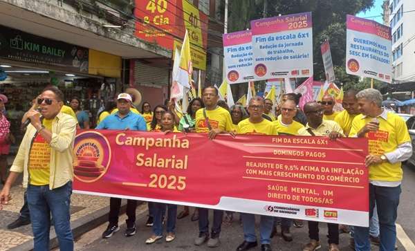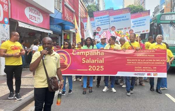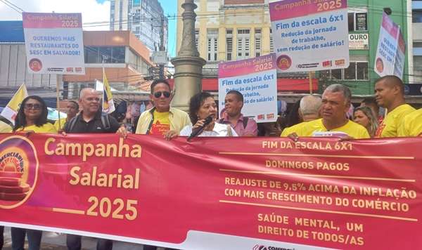 Com uma caminhada no palco das lutas políticas na cidade, o Sindicato dos Comerciários de Salvador lançou sua Campanha Salarial 2025. Um carro de som, dirigentes e ativistas percorreram, nesta sexta-feira (31), a Avenida Sete chamando a atenção da categoria e da população para as principais reivindicações deste ano: fim da Escala 6×1, cuidados com a saúde mental, domingos pagos e reajuste acima da inflação.