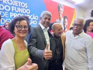 Falando em nome das centrais sindicais, a presidenta da CTB Bahia reforçou a importância do trabalho desenvolvido pela Setre. “Parabenizamos o governador Jerônimo Rodrigues, o secretário Augusto Vasconcelos, o coordenador Agenda Bahia do Trabalho Decente, Álvaro Gomes, e toda equipe da secretaria. O trabalho do Funtrad vai na linha que e o movimento sindical realiza, de melhorar a vida da classe trabalhadora e das pessoas em sua volta. Por isso, a Setre e a Bahia são destaques e referências nacionais e internacionais nesse tema. Contem com o sindicalismo para colaborar com os projetos”, enfatizou a dirigente, que estava ao lado da deputada federal Alice Portugal (PCdoB).