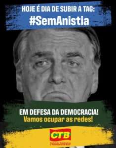 Diante do avanço do processo, a Central dos Trabalhadores e Trabalhadoras do Brasil (CTB)orientou sua militância a reforçar nas redes sociais a mobilização em torno da hashtag #SemAnistia, exigindo responsabilização dos envolvidos.